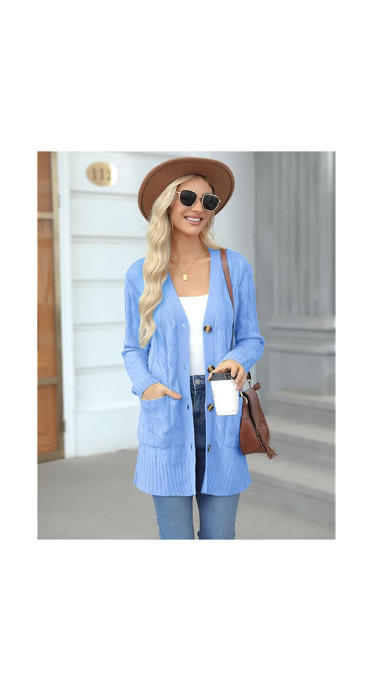 SMART COLLECTION Cardigan Soffio – Lungo, con Bottoni e Tasche, Ideale per le Mezze Stagioni