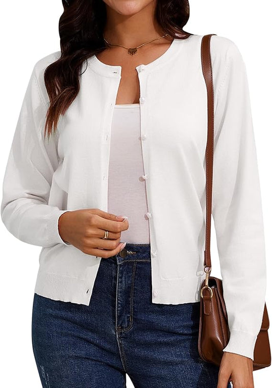 SMART COLLECTION Luna Soft – Cardigan Girocollo Donna Leggero ed Elegante per Tutte le Stagioni